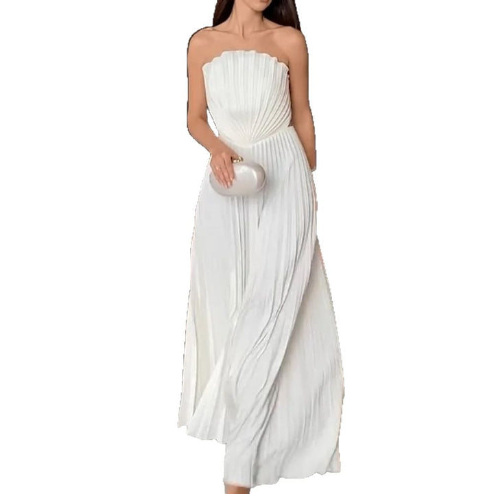The Strapless Pleated Shell Gown is a statement piece for modern elegance. Designed with a sculpted shell-shaped bodice and structured pleating, this floor-length dress flows effortlessly with every step. Made from high-quality polyester, it blends artistry and fashion to create a sophisticated silhouette perfect for formal dinners, black-tie events, red carpet appearances, or evening soirées.