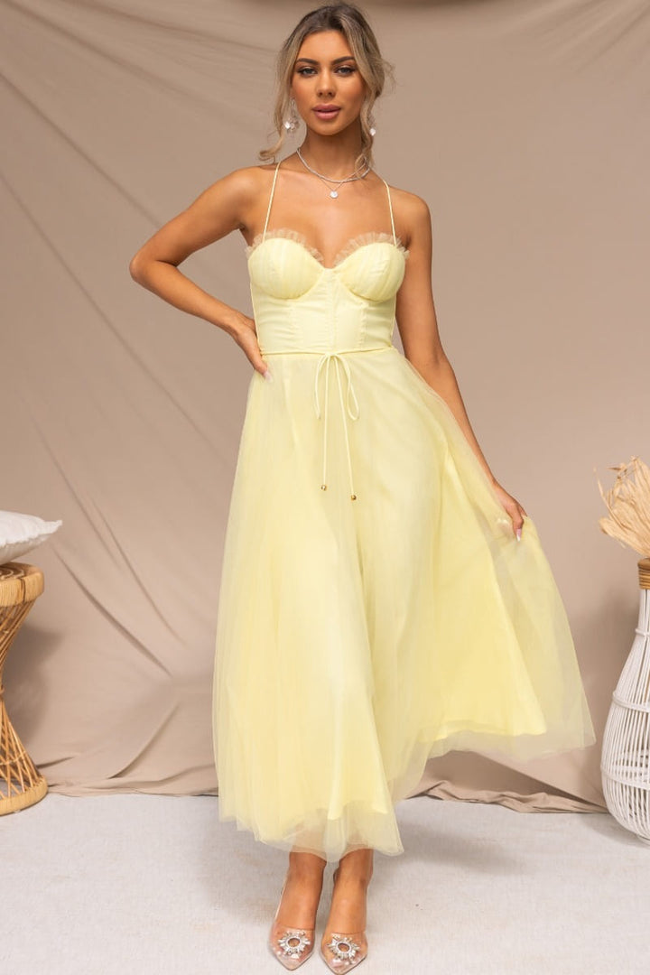 You can shop this gorgeous Tulle Corset Midi Dress exclusively on Lazaha. With a wide selection of colors and fast delivery, Lazaha makes it easy to find your perfect fit and flaunt your feminine charm.